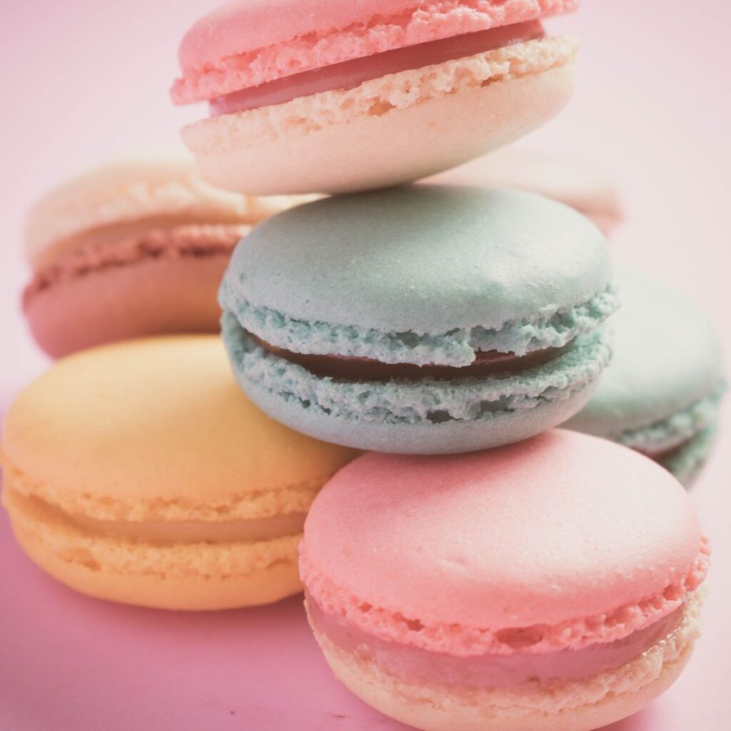 まるで虹のような7色のマカロン。それぞれに異なるフレーバーが詰まっており、見た目も味も楽しめます。特別な日の贈り物にも最適です。